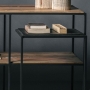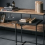 Ce meuble TV aux lignes contemporaines avec 2 étagères est fabriqué avec une solide structure en métal. Les plateaux du meuble principal sont réalisées avec du bois recyclé récupéré sur d'anciens bateau de pêche et les plateau des consoles d'appoints sont en bois de MINDI massif.