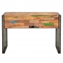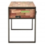 Bureau industriel FACTORY SAMUDRA avec 2 tiroirs réalisé en fer et en bois de bateau recyclé. Pièces unique : Aucun meuble n'est identique. Les touches de couleurs présentes sur le bois ainsi que les nuances du bois varient d'un bureau à l'autre en fonction du bois disponible lors de la fabrication. Contactez-nous pour plus d’information